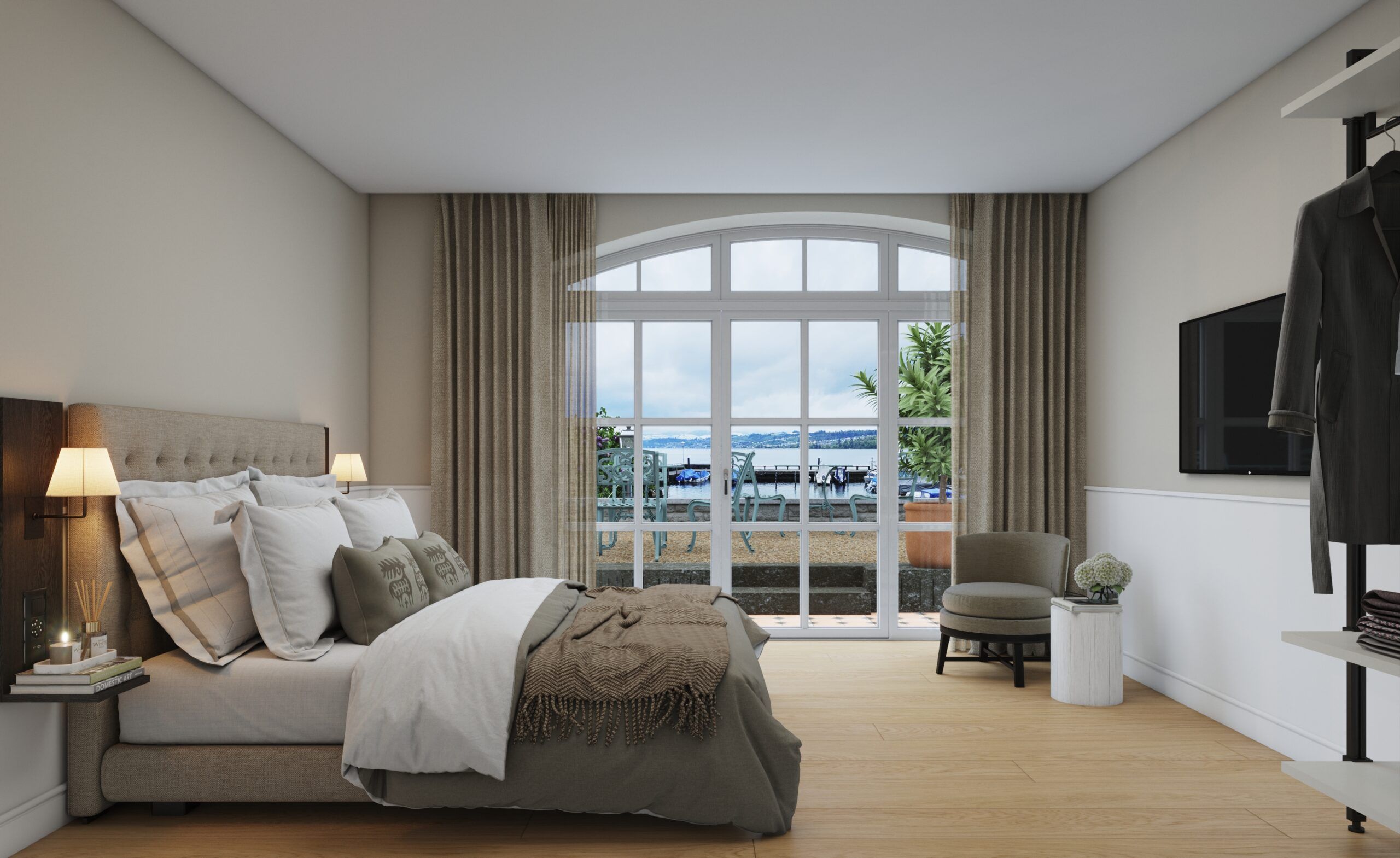 Unsere Doppelzimmer zum See mit Sitzecke laden zu einem unvergleichlichen Kurzurlaub am See geradezu ein. Ein atemberaubender Blick auf den Zürichsee und das Panorama der Alpen lässt Ihr Herz höher schlagen!